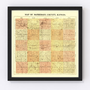 Discover a piece of the past with this beautifully restored vintage map of McPherson County, Kansas from 1898. Ideal for history enthusiasts or anyone who appreciates local heritage, this map adds a touch of tradition to any room. Whether it's Lindsborg, known for its charming Swedish roots, or the bustling town of McPherson itself, this map captures the essence and spirit of McPherson County's storied landscape.