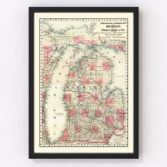 Whether it's a gift for someone who appreciates local history or simply treating yourself to something meaningful and beautiful, this 1878 Michigan map won't disappoint – it's more than just art; it’s a piece of history!