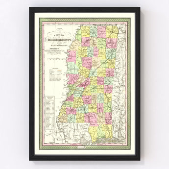 Step back in time with our beautifully restored 1854 vintage map of Mississippi. Perfect for history buffs or anyone who cherishes local heritage, this map seamlessly blends the charm of the past with quality craftsmanship. Whether you're decorating your living room or outfitting your office, its classic design makes it a sophisticated addition to any space.