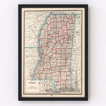 Discover a captivating piece of Mississippi's past with our digitally restored 1893 vintage map print. This beautiful creation is more than just a map—it's a journey through time, perfect for history buffs and fans of local heritage. Whether you're decorating your home or office, this traditional and classy art piece adds warmth and character to any space.