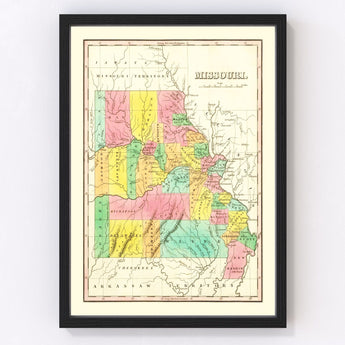 Discover the charm of 1831 Missouri with our stunning vintage map print. Carefully digitally restored by Ted's Vintage Art, this piece captures a glimpse into the past that history enthusiasts will adore. Whether you're decorating your home or office, this traditional map brings a classy touch to any room while celebrating local history.
