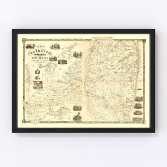 Available framed with solid wood that's expertly stained for a timeless look or unframed on premium matte paper, it's ready to hang in any room right out of the box. If you prefer something more tactile, our hand-assembled canvas versions add a textured element that's both traditional and classy. This piece not only serves as striking decor but also acts as an engaging conversation starter about Monmouth County's rich past. It's a thoughtful gift for those who appreciate historical nuances with an artistic touch.