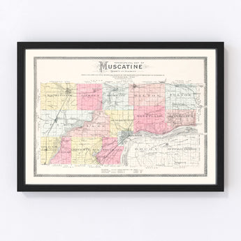 Discover the charm and history of Muscatine, Iowa, with this beautifully restored vintage map from 1899. Perfect for lovers of local history, this unique piece brings a touch of traditional elegance to any space. Whether you’re looking to decorate your home or office, this map serves as a stylish reminder of Muscatine County's rich past.