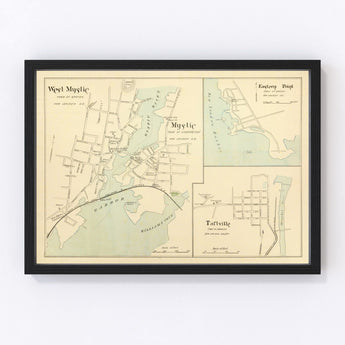 Discover a piece of history with our beautifully restored vintage map of Mystic, Connecticut from 1893. This timeless artwork offers a glimpse into the past of New London County and is sure to be a cherished addition to any home or office decor.