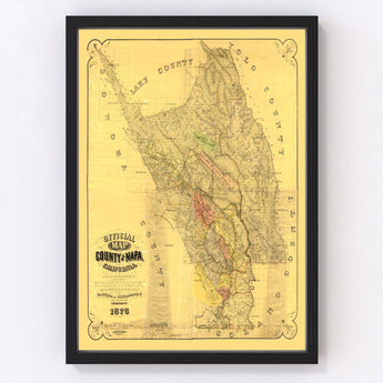 Discover the charm of California's wine country with this beautifully restored 1876 map of Napa County. Featuring notable towns like Napa, St. Helena, and Calistoga, this piece offers a glimpse into the region's rich past. Each map is hand-crafted using high-quality materials, designed to make a statement in any home or office setting.