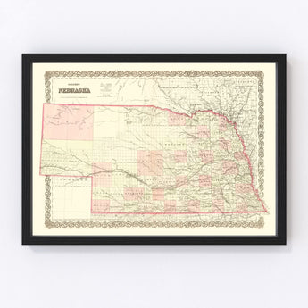 Vintage Map of Nebraska 1867