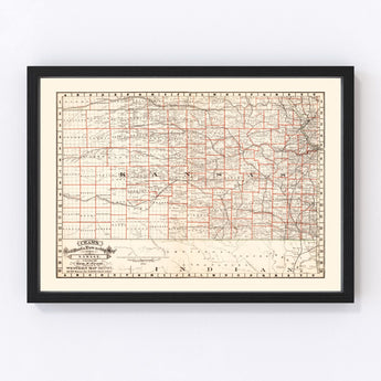 Vintage Railroad Map of Nebraska 1882