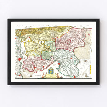 Discover a fascinating slice of history with our meticulously restored vintage map of the Netherlands from 1665, crafted by Ted's Vintage Art. Whether you're a history enthusiast or simply enjoy unique decor, this piece is sure to catch your eye. Our team has ensured that each detail is preserved with care, highlighting the rich past of this European gem.