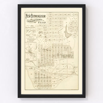 Explore the charm of New Birmingham, Tarrant County with this beautifully restored 1891 vintage map. Offering a fascinating glimpse into the past of Texas, it is ideal for anyone passionate about local history. Whether you're decorating your home or office, this sophisticated piece adds a touch of nostalgia and class to any space.