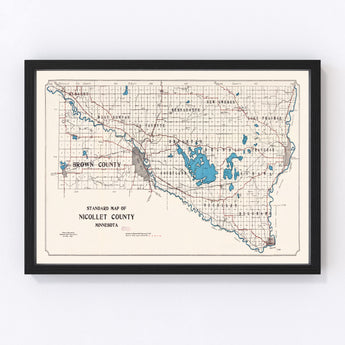 Step back in time with our captivating 1913 map of Nicollet County, Minnesota. This vintage piece, lovingly restored by Ted's Vintage Art, offers a glimpse into the rich history of this charming region. From the bustling streets of St. Peter to the serene landscapes surrounding North Mankato and Lafayette, this map beautifully captures every detail.