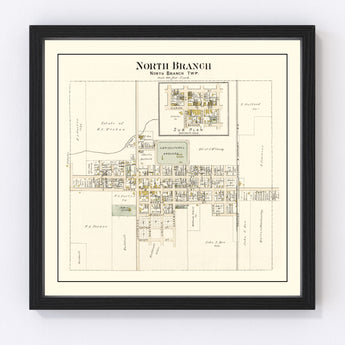 Uncover a piece of history with this stunning vintage map of North Branch, nestled in Lapeer County, Michigan. Originally created in 1893, this piece has been expertly restored by Ted's Vintage Art to highlight the intricate details that capture the essence of North Branch during its earlier days. Whether you're a local history enthusiast or someone who appreciates timeless decor, this map makes for a thoughtful gift and is sure to spark conversation.