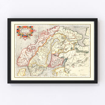 Step back in time with our exquisite vintage map print from 1623, showcasing the fascinating regions of Norway, Sweden, and Finland. Expertly restored by Ted's Vintage Art, this map retains all its historical charm while being updated for modern display.