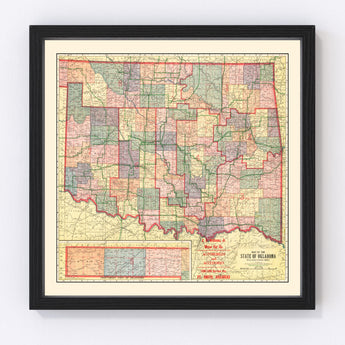 Discover the charm of early 20th-century Oklahoma with our beautifully restored vintage map from 1914. A delightful addition to any home or office, this piece not only adds a touch of class but also sparks intriguing conversations by celebrating local history. Whether you're a history buff or simply looking for captivating decor, this map offers something special.