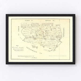Discover a piece of Texas history with this meticulously restored 1880 map of Orange County. It's an engaging window into the past, perfect for those who cherish local history and traditional decor. Whether you're fondly familiar with towns like Vidor and Bridge City or just beginning to explore the area's rich heritage, this print makes an intriguing wall addition.