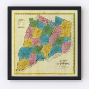 The detailed depiction of notable towns like Cooperstown and Oneonta brings a piece of New York's past right into your space. Choose from a range of formats that suit your style: sturdy solid wood frames offer a classic touch while canvas prints lend an artistic flair. Prefer something simpler? Our high-quality matte paper print is ideal for those who want to frame it themselves.