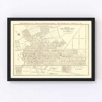 Vintage Map of Palo Alto, California 1924