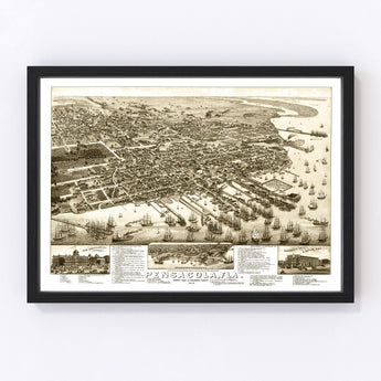 Vintage Map of Pensacola, Florida 1885