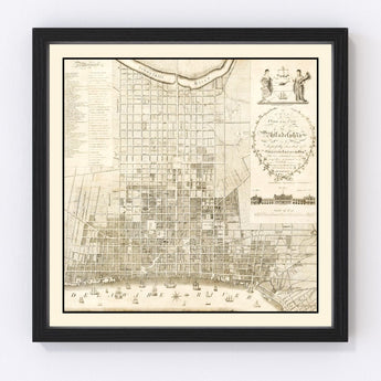 Vintage Map of Philadelphia, Pennsylvania 1819