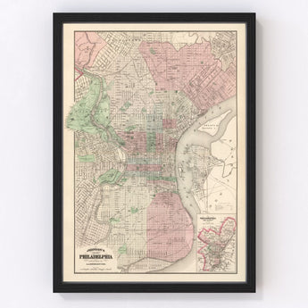 Vintage Map of Philadelphia, Pennsylvania 1886