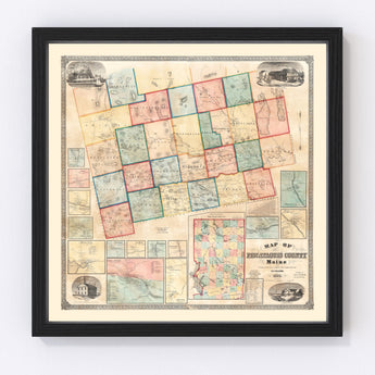 Step back in time with our beautifully restored 1858 vintage map of Piscataquis County, Maine. This unique piece captures the charm and history of a bygone era, featuring notable towns like Dover-Foxcroft, Brownville, and Greenville. Carefully digitally restored by Ted's Vintage Art, it’s an ideal gift for history buffs or anyone who cherishes local heritage.