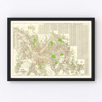 Looking for a unique way to celebrate Pittsburgh's rich history? Our 1920 vintage map of Pittsburgh, nestled in Allegheny County, Pennsylvania, is the perfect choice. Digitally restored by Ted's Vintage Art, this map brings history into your home or office with a classy touch.