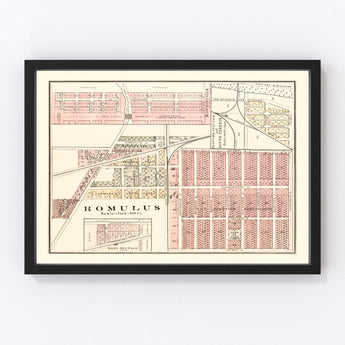 Step back in time with this beautifully restored 1893 map of Romulus, nestled within Wayne County, Michigan. Our team at Ted's Vintage Art has lovingly brought new life to this piece, making it a wonderful addition to any home or office setting. Whether you're a history enthusiast or simply someone who appreciates a touch of tradition in your decor, this vintage map is sure to delight.