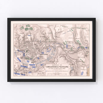 Vintage Map of the Battles of Smolensko & Valtellina, 1812
