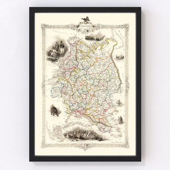 Step back in time with our exquisite 1851 vintage map of Russia in Europe. Digitally restored to bring out every intricate detail, this map is a treat for anyone with a passion for history or geography.