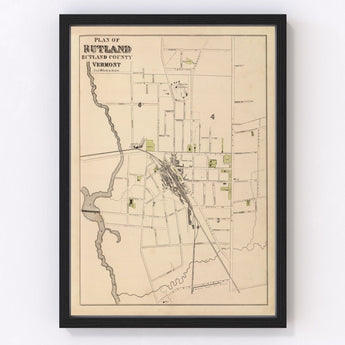 Vintage Map of Rutland, Vermont 1876