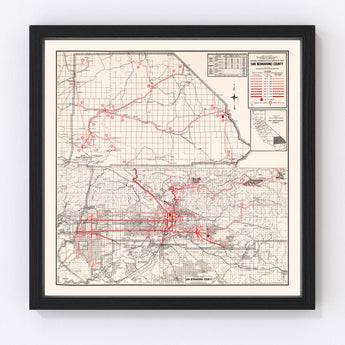 Discover the charm of San Bernardino County with our beautifully restored 1935 vintage map. This piece captures a snapshot of history, featuring notable cities like San Bernardino, Ontario, and Victorville. Perfect for history buffs or anyone with ties to this iconic region of California, it brings local heritage right to your doorstep.
