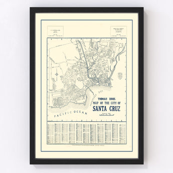 Vintage Map of Santa Cruz, California 1920