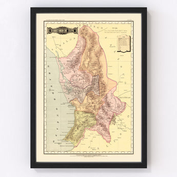 Discover the charm of Tepic with our beautifully restored 1886 vintage map. Ideal for history buffs and decor enthusiasts alike, this piece offers a glimpse into the past of Mexico's rich landscape. Imagine it gracing your home or office walls, where it serves not only as classy decoration but also as an engaging conversation starter.