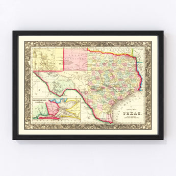 Discover the charm of days gone by with this exquisitely restored 1860 vintage map from Ted's Vintage Art. Perfect for those who appreciate local Texas history, this piece is a delightful conversation starter, whether it's hanging in your home or office.