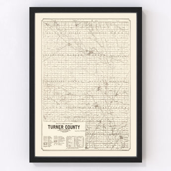 This map makes for an engaging conversation starter at home or in the office. Imagine guests gathering around as you share stories about Turner County's rich background. All our prints are constructed with precision; choose from framed prints made with solid wood frames or canvas prints crafted on polycotton canvas over sturdy wooden stretcher bars—both ready to hang right out of the box. For something simpler yet stylishly classic, our unframed versions are printed on top-notch matte paper.