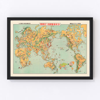 Vintage Japanese Manga Pictorial Map 1933