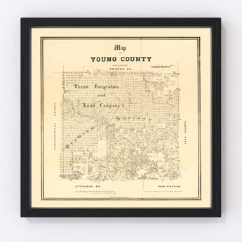 Discover the rich history of Young County, Texas with this beautifully restored vintage map from 1879. Perfect for history enthusiasts or anyone connected to this area, it's a piece that adds both charm and conversation to your space. Picture Graham and Olney emerging from the map’s intricate details under your appreciation. The craftsmanship speaks for itself; each print is tastefully done on high-quality materials. Whether you choose our framed option—with its solid wood stained finish—or a sleek unframed version, know that quality isn't compromised.